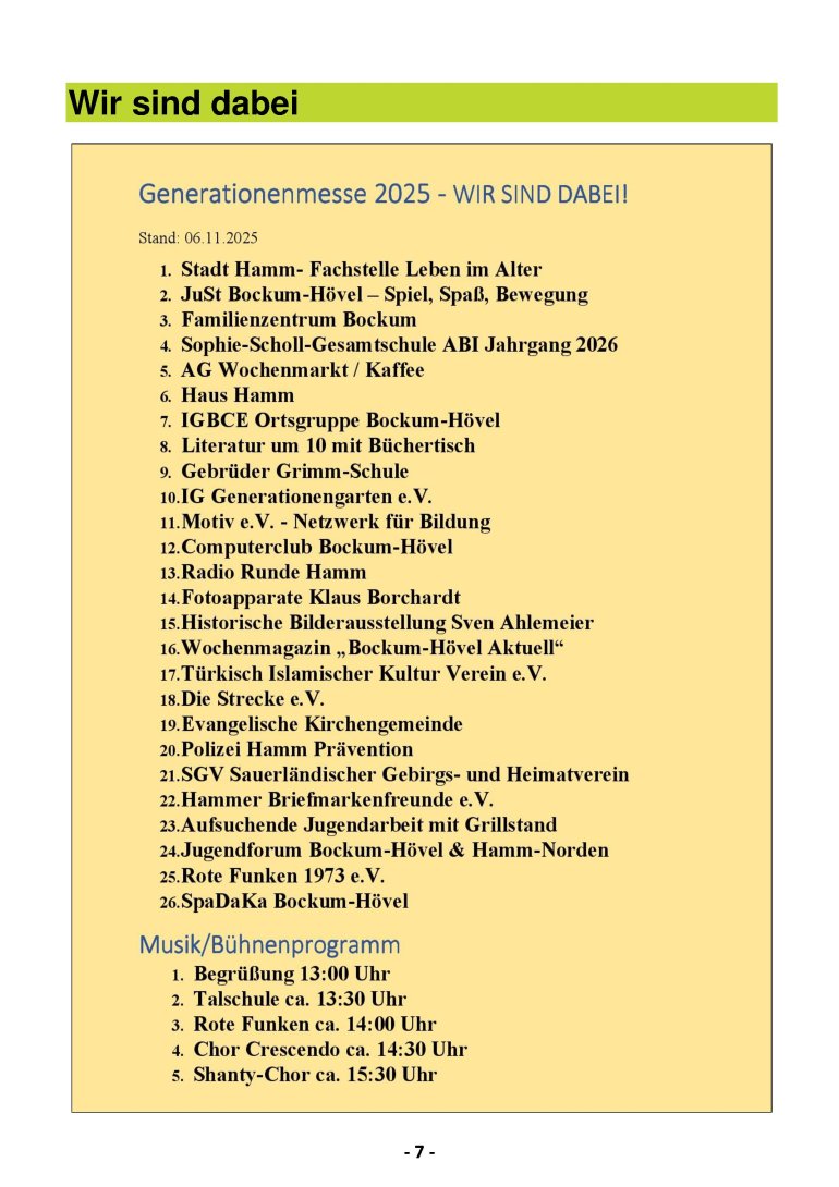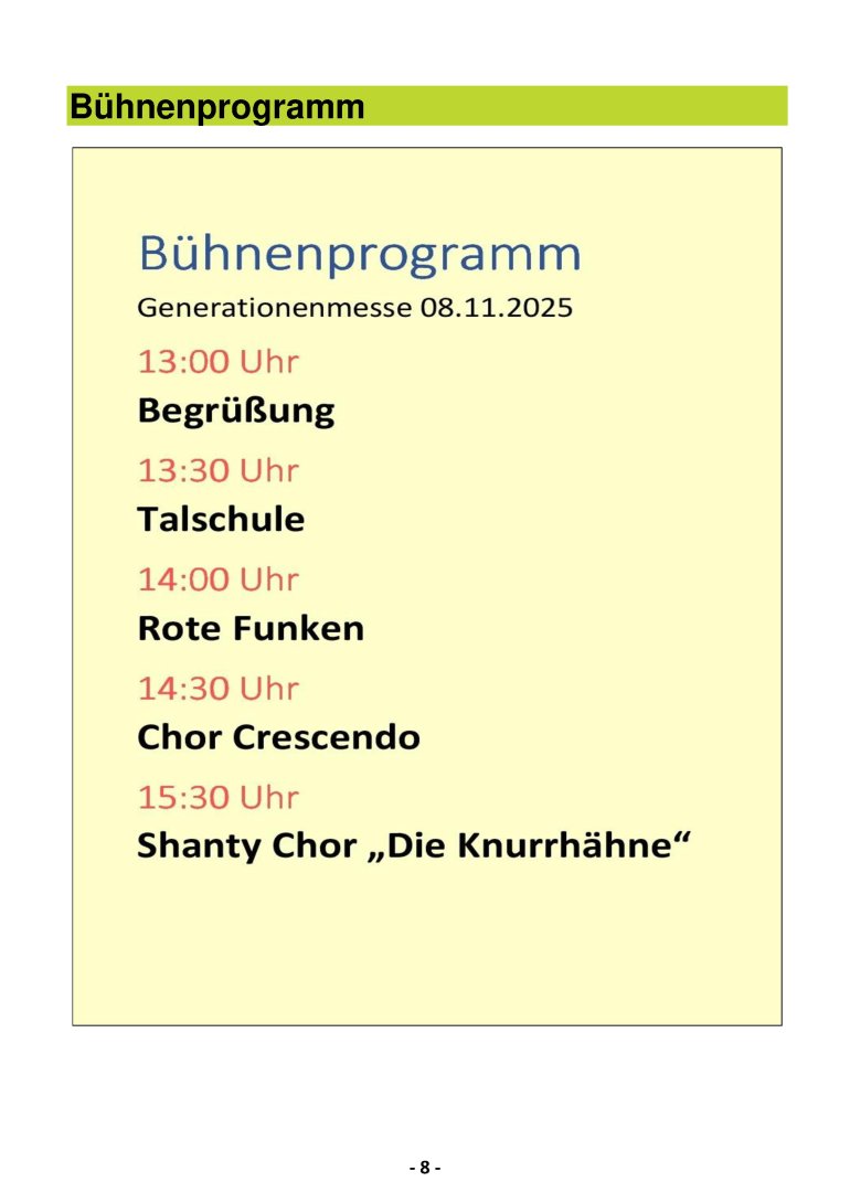 Generationenmesse AKTUELLWählen Sie zwischen 4 Darstellungsmöglichkeiten 1. SMARTPHONE - ANZEIGE (diese Seite zum einfachen Scrollen) 2. FLIP-BOOK - ANZEIGE (Zur Anzeige auf dem PC/Notebook) 3. PDF - DOWNLOAD (Zur Anzeige in Ihrem PDF Programm) 4. PDF - ANZEIGE (Zur Anzeige in einem PDF-Viewer) Option 3. und 4. ermöglichen das Anklicken von Links im Dokument!